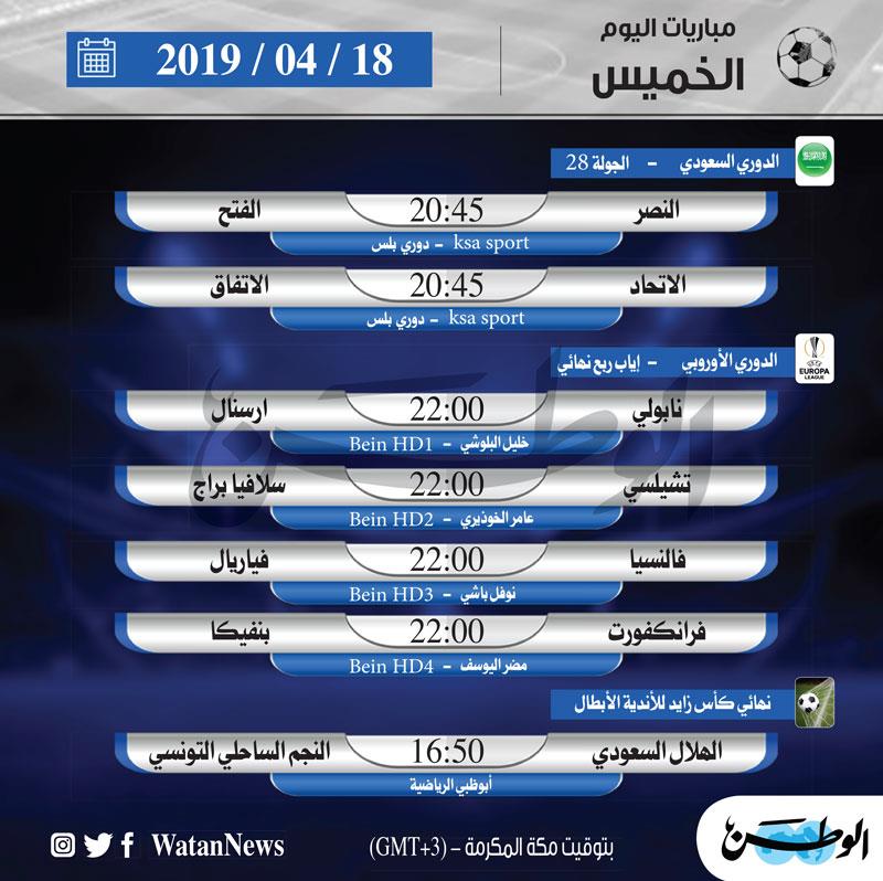 أبرز المباريات العربية والعالمية ليوم الخميس 18 أبريل 2019