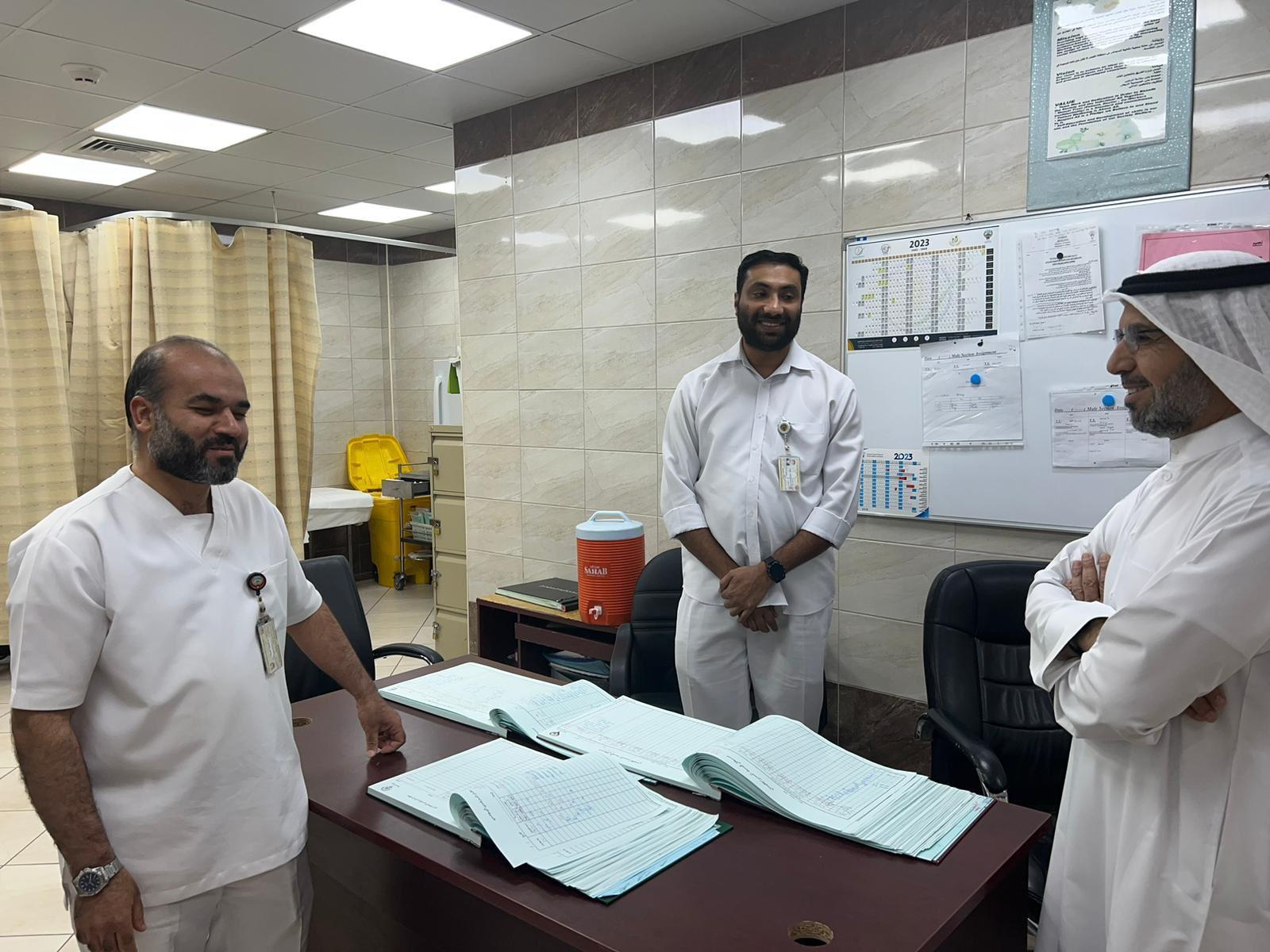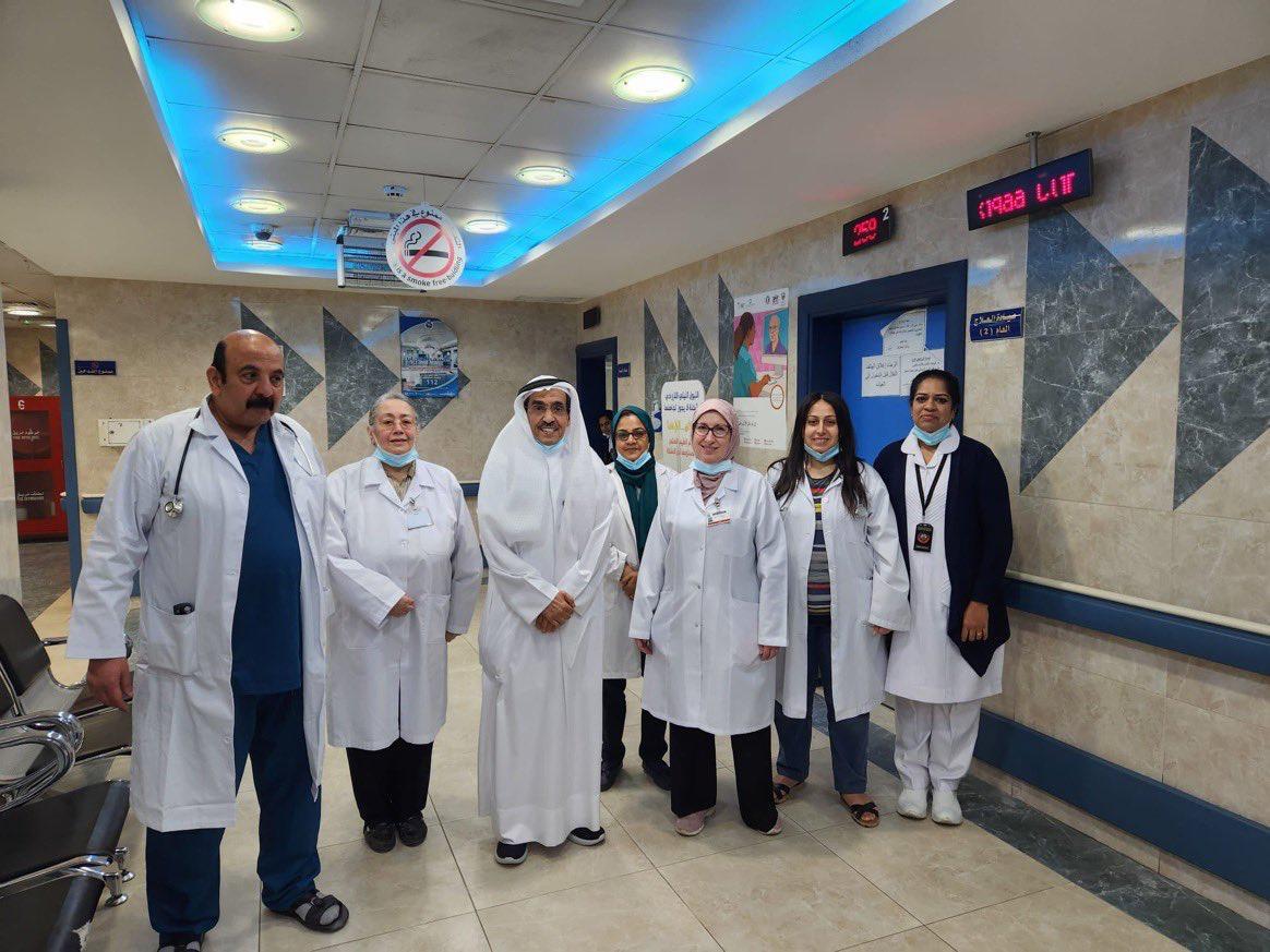 تنفيذا لتوجيهات وزير الصحة د.أحمد العوضي وللاطمئنان على سير العمل في أول أيام العيد، قام مدراء المناطق الصحية بالفرونية والجهراء والأحمدي بتفقد سير العمل في مستشفى الفروانية ومنطقة الجهراء الصحية والمراكز الصحية بالأحمدي و لضمان استمرار تقديم الخدمة للمرضى والمراجعين خلال عطلة العيد .