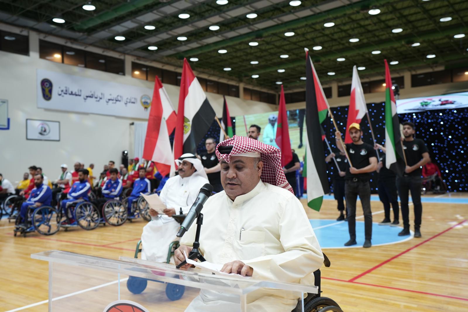 تحت رعاية وزير الاعلام والثقافة والشباب عبدالرحمن المطيري والذي أناب عنه فيصل اليتيم افتتحت البطولة العربية الأولى لكرة السلة على الكراسي المتحركة في الثامنة من مساء أمس الخميس على صالة النادي الكويتي الرياضي للمعاقية بحضور رئيس الاتحاد العربي لرياضة ذوي الاعاقة ايهاب حسنين بمشاركة 8 دول عربية ورئيس الاتحاد الكويتي لكرة السلة لكراسي المتحركه #شافي_الهاجري ورئيس الاتحاد الاسيوي لرياضة ذوي الاعاقة والرئيس الفخري للنادي الكويتي الرياضي للمعاقين الشيخة شيخة العبدالله الصباح ورئيس فريق أصدقاء المعاقين الشيخة سهيله الصباح ورئيس اللجنة البارالمبية الكويتية منصور السرهيد ونائب الرئيس شيخه الغانم وسفراء الدول المشاركة بالبطولة وجاءت نتائج اليوم الاول فوز منتخبات فلسطين على الاردن 49 / 37 ومصر على المغرب 57 / 54 والامارات على البحرين 66 / 33 والكويت على لبنان 80 / 29