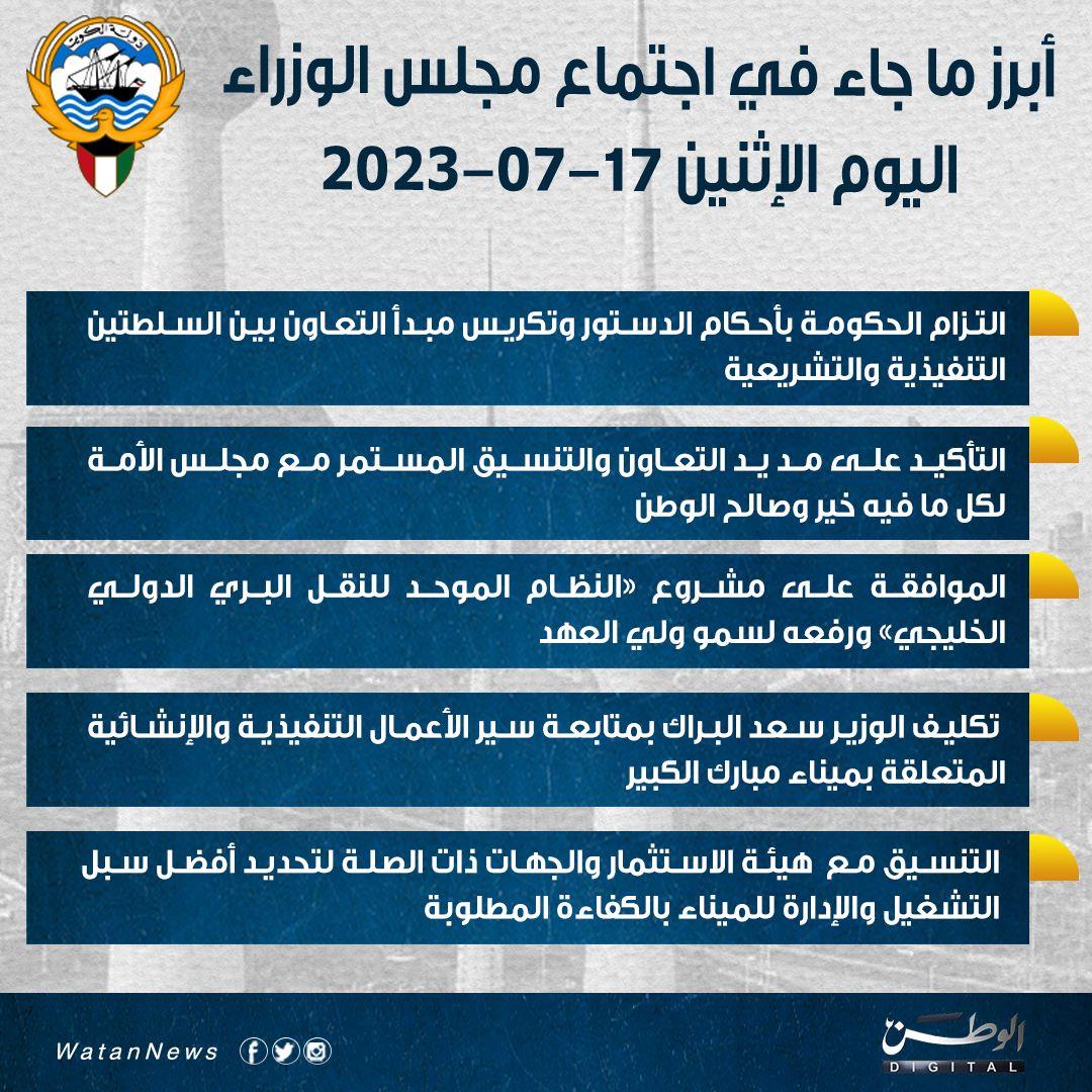 ومجلس الوزراء يجدد تأكيد حرصه على مد يد التعاون والتنسيق المستمر مع مجلس الأمة لكل ما فيه خير وصالح الوطن والمواطن.