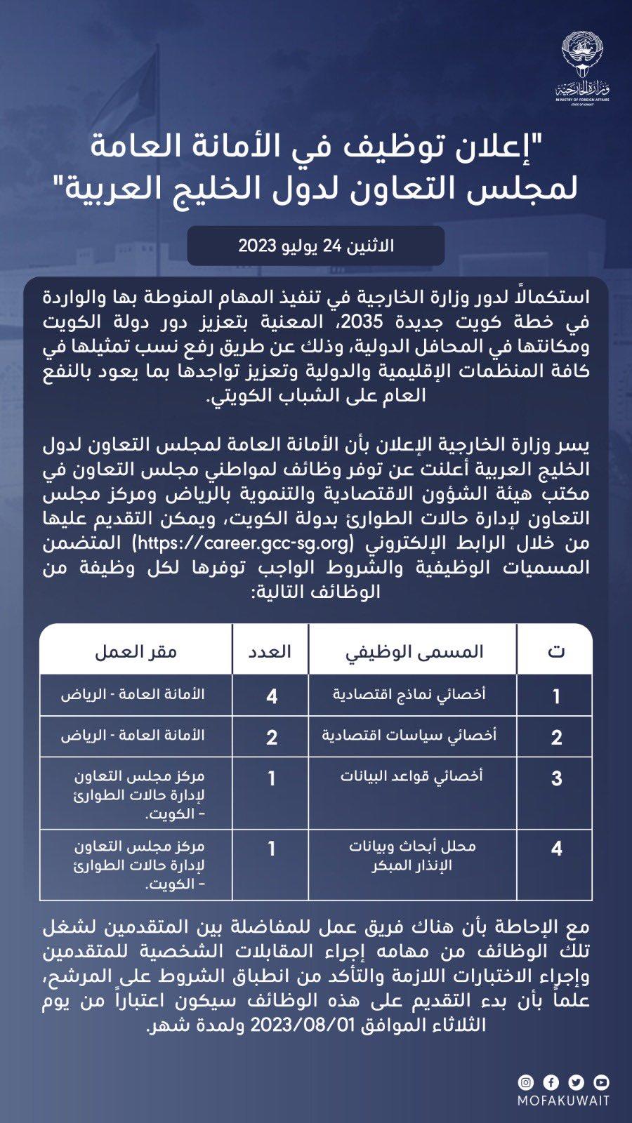 الخارجية تعلن عن فرص وظيفية بالأمانة العامة لمجلس التعاون لدول الخليج العربية