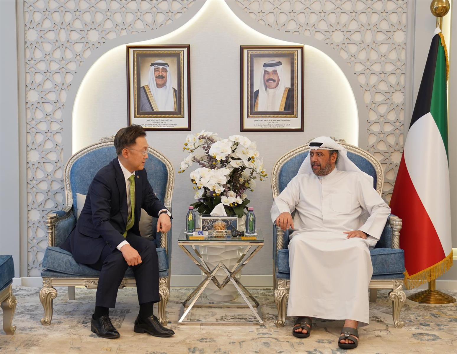 استقبل نائب رئيس مجلس الوزراء ووزير الدفاع الشيخ أحمد فهد الأحمد الصباح مساء اليوم الثلاثاء سفير جمهورية كوريا الجنوبية الصديقة لدى البلاد تشونغ بيونغ ها.