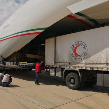 وتأتي الطائرة ال28 وعلى متنها 10 أطنان مساعدات إغاثية متنوعة من غذاء ومواد لمجابهة فصل الشتاء نظمت من قبل جمعية السلام للأعمال الإنسانية والخيرية وتعد الثامنة لها حيث بلغت المساعدات المسجلة لها 200 طن.