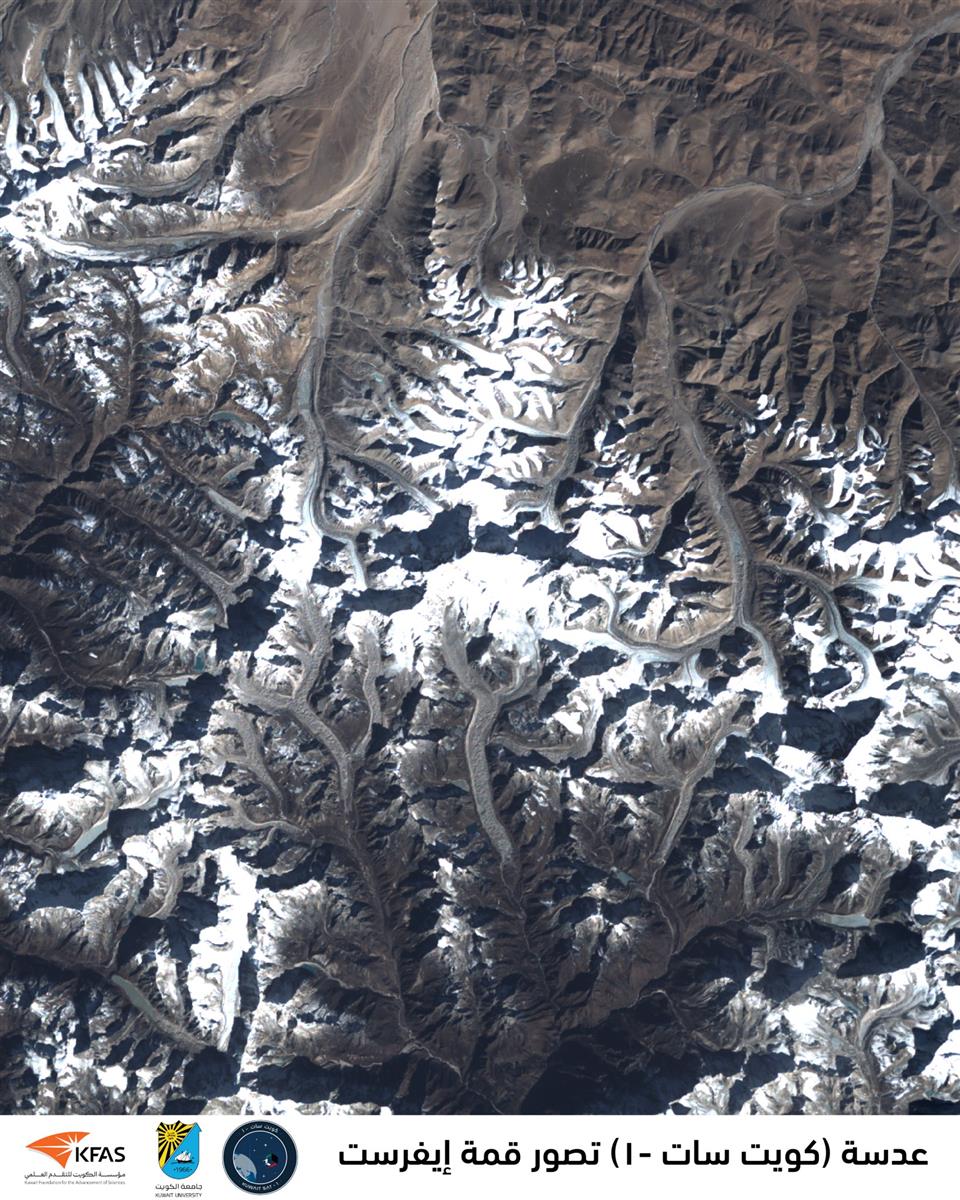 تمكن فريق القمر الصناعي الكويتي "كويت سات-1" من التقاط صورة فضائية فريدة لأعلى قمة على سطح الأرض، وهي قمة إيفرست الواقعة ضمن سلسلة جبال الهيمالايا، والتي تُعد من أكثر المناطق الجيولوجية نشاطًا في العالم.