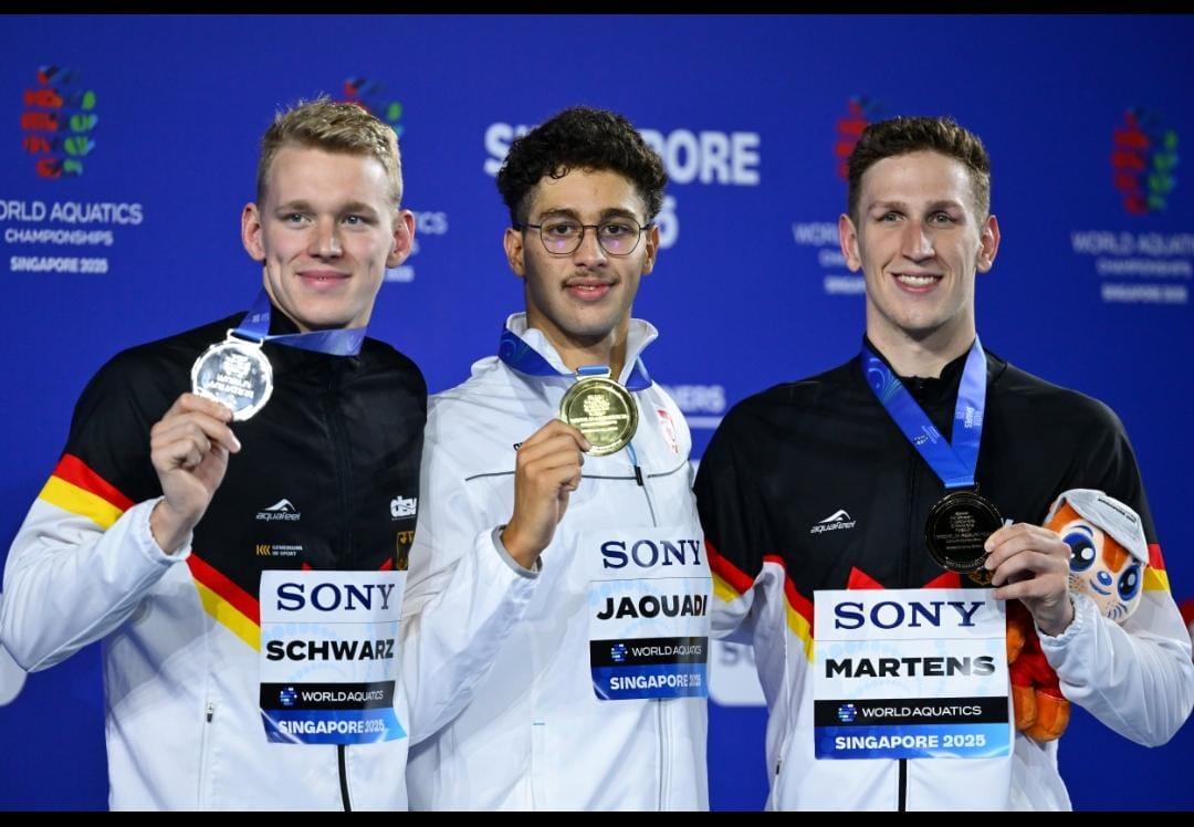 حقق السباح التونسي أحمد الجوادي إنجازاً تاريخياً بفوزه بالميدالية الذهبية في سباق 800 متر سباحة حرة ضمن بطولة العالم للألعاب المائية 2025 المقامة في سنغافورة، مسجلاً زمناً بلغ 7:36.88 دقيقة، ليصبح ثالث أسرع توقيت في تاريخ السباق. وتفوق الجوادي على أبرز منافسيه من ألمانيا، ليهدي الذهب لتونس بعد أداء لافت.