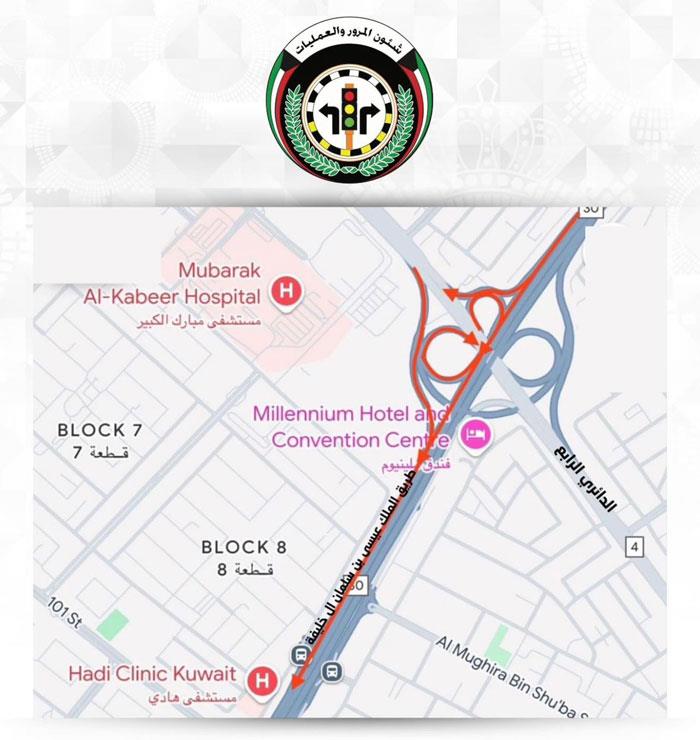 أعلنت الإدارة العامة للمرور عن إغلاق حارة الأمان والمسار الأيمن على طريق الملك عيسى بن سلمان آل خليفة (طريق 30) في الاتجاه القادم من منطقتي حولي والجابرية، وذلك ابتداءً من يوم الأحد الموافق 3 أغسطس 2025، وحتى الانتهاء من أعمال الصيانة.