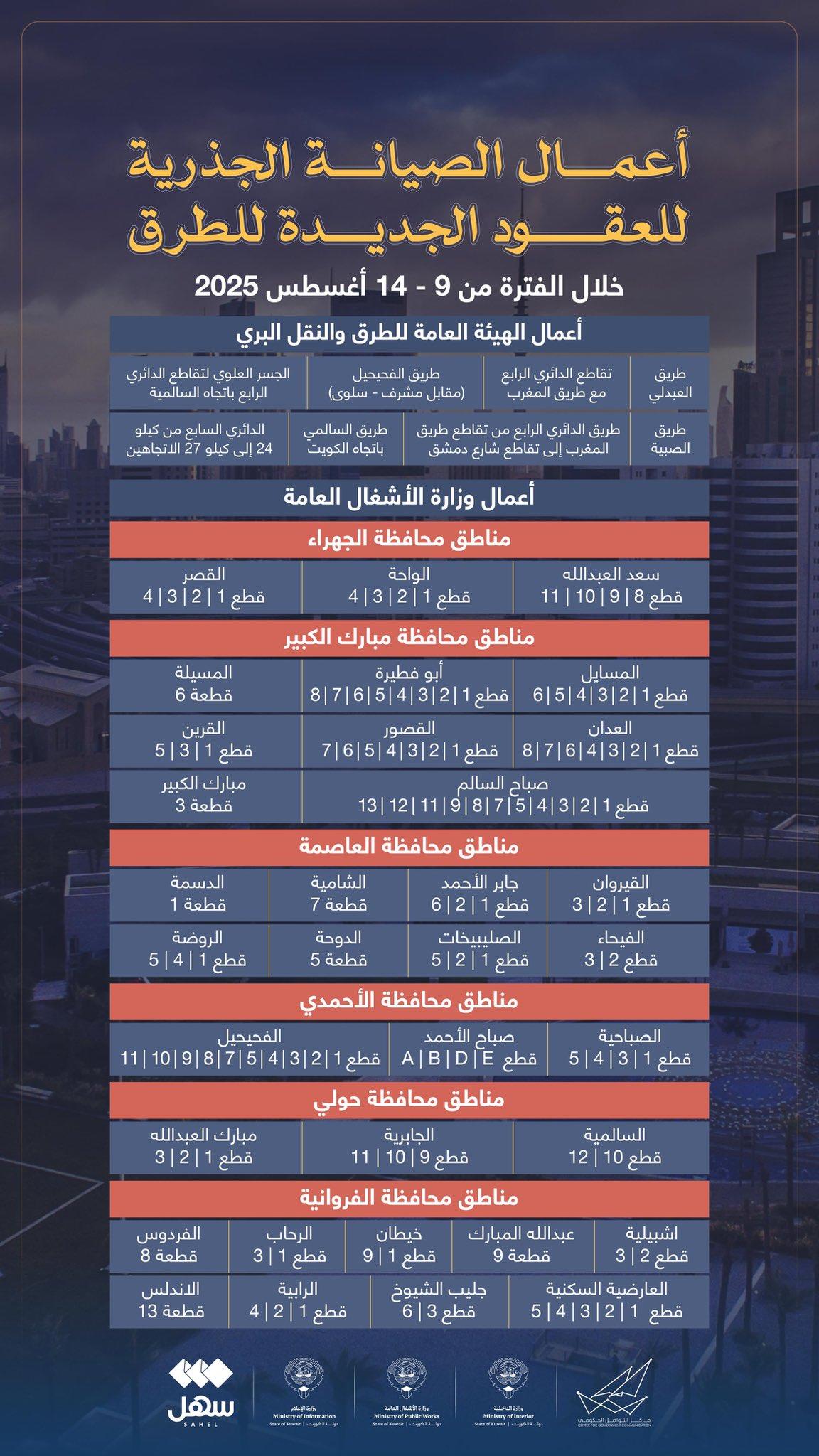 وأكدت الوزارة أن هذه الأعمال تعد جزءًا من خطة شاملة لتطوير شبكة الطرق في مختلف المناطق، لتعزيز التنقل وتلبية احتياجات النمو العمراني في الكويت.