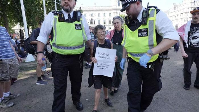 أعلنت شرطة العاصمة البريطانية لندن، أنها أوقفت حتى الساعة السادسة مساءً من يوم السبت 9 أغسطس 365 شخصا بتهمة دعم منظمة محظورة، في حين ألقت القبض على سبعة آخرين في قضايا منفصلة، بينهم خمسة متهمون بالاعتداء على ضباط شرطة. وأكدت السلطات أن أيًا من الضباط لم يتعرض لإصابات خطيرة.
