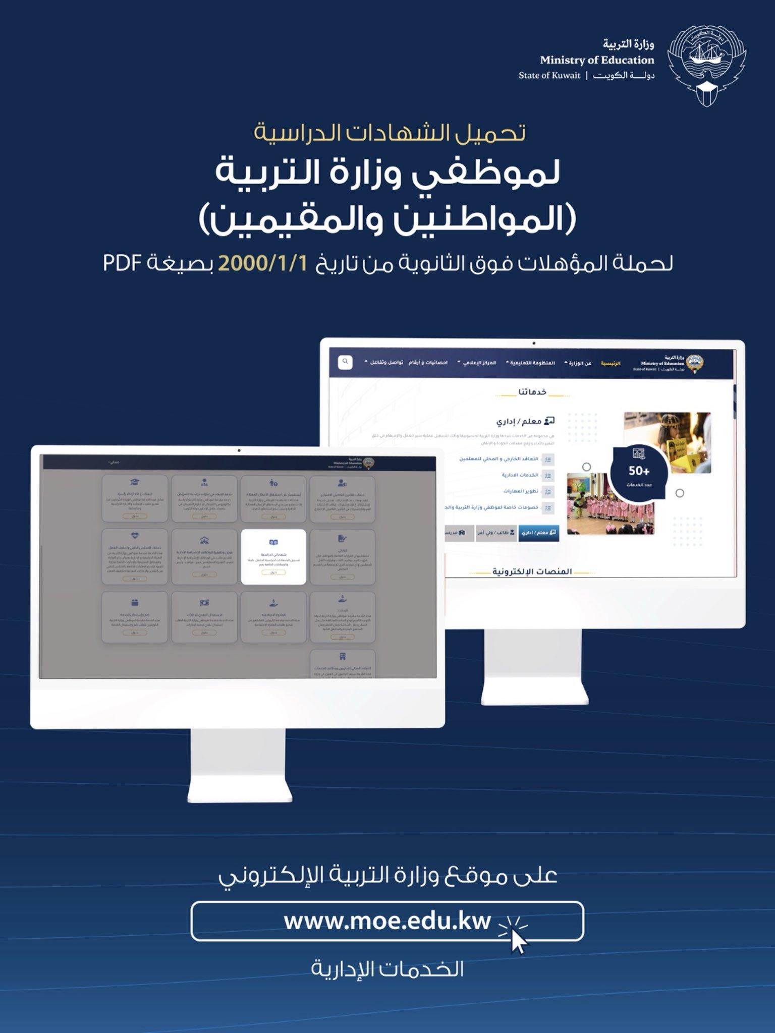 كما أكدت «التربية» أنه يمكن للموظفين من المواطنين والمقيمين، الذين سبق لهم رفع شهاداتهم الدراسية، التأكد من وجودها على النظام بنفس الخطوات الموضحة أعلاه، حرصًا على استيفاء البيانات بشكل صحيح ومحدث.