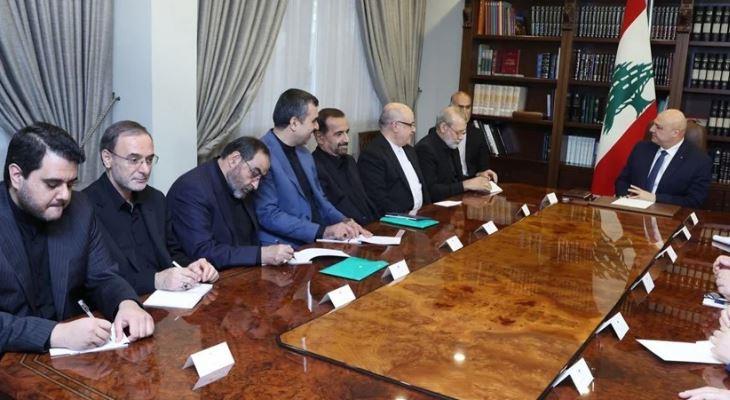 ونوه المسؤول الايراني بالدور الذي يقوم به الرئيس اللبناني في "تمتين الوحدة الوطنية وتوحيد الصفوف داخل الطوائف اللبنانية ومع جميع مكونات الشعب اللبناني" مجددا دعم بلاده للحكومة اللبنانية والقرارات الصادرة عن مؤسساتها الدستورية.