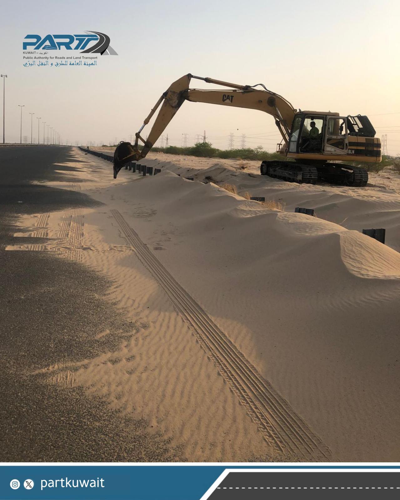 أعلنت الهيئة العامة للطرق والنقل البري استمرار أعمال إزالة تجمعات الرمال (السافي) في منطقة الصبية وعلى طول جسر الشيخ جابر الأحمد، وذلك ضمن جهودها للحفاظ على انسيابية الحركة المرورية وضمان السلامة على الطرق.