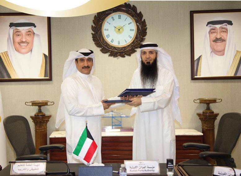 وقعت مؤسسة الموانئ الكويتية اتفاقية تعاون مع الهيئة العامة للتعليم التطبيقي والتدريب، بهدف إجراء اختبارات للمتقدمين للعمل بالوظائف التي تطرحها المؤسسة ضمن خططها لتعزيز الكفاءات الوطنية.