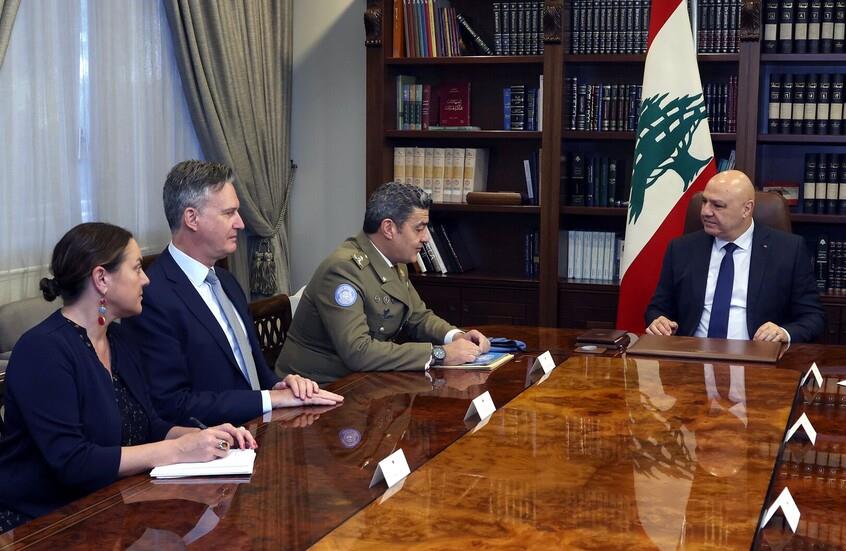أكد الرئيس اللبناني جوزيف عون تمسك لبنان ببقاء قوات "اليونيفيل" الدولية في الجنوب حتى تنفيذ القرار 1701 بكل مندرجاته، واستكمال انتشار الجيش اللبناني إلى الحدود الدولية.