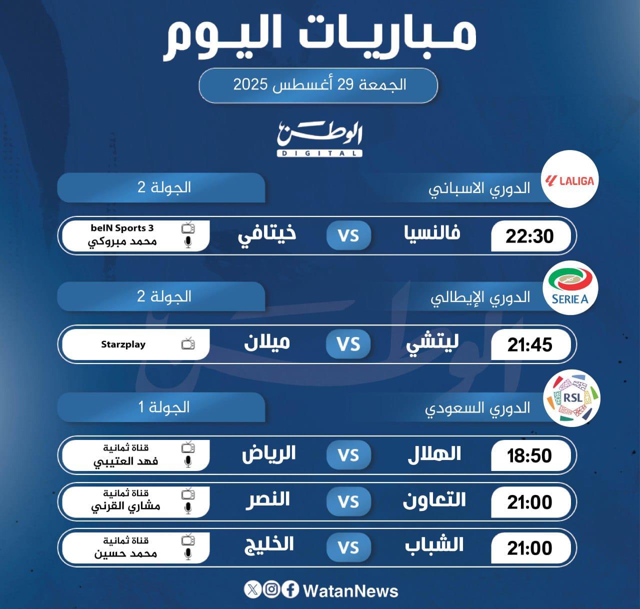 أبرز المباريات العربية والعالمية ليوم الجمعة 29 أغسطس 2025
