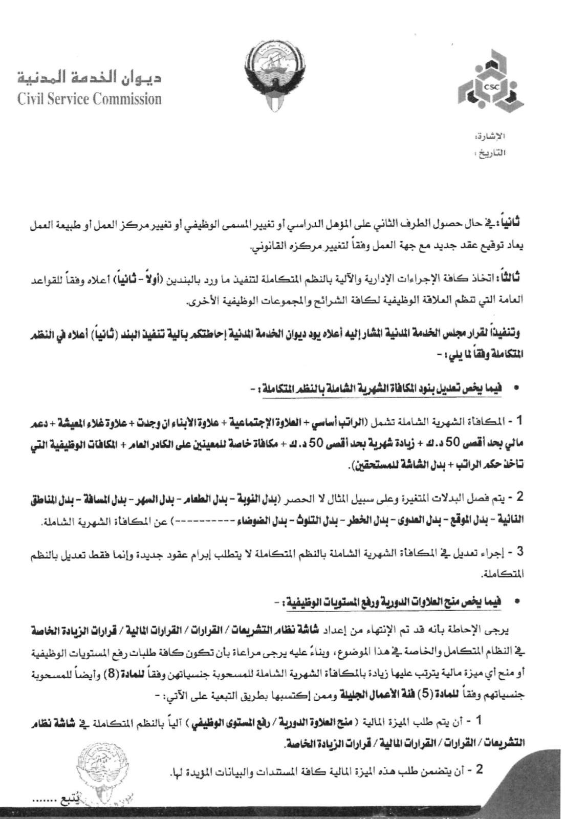 ودعا إلى اتخاذ جميع الإجراءات الإدارية والآلية بالنظم المتكاملة لتنفيذ ما ورد وفقاً للقواعد العامة التي تنظم العلاقة الوظيفية لجميع الشرائح والمجموعات الوظيفية الأخرى.