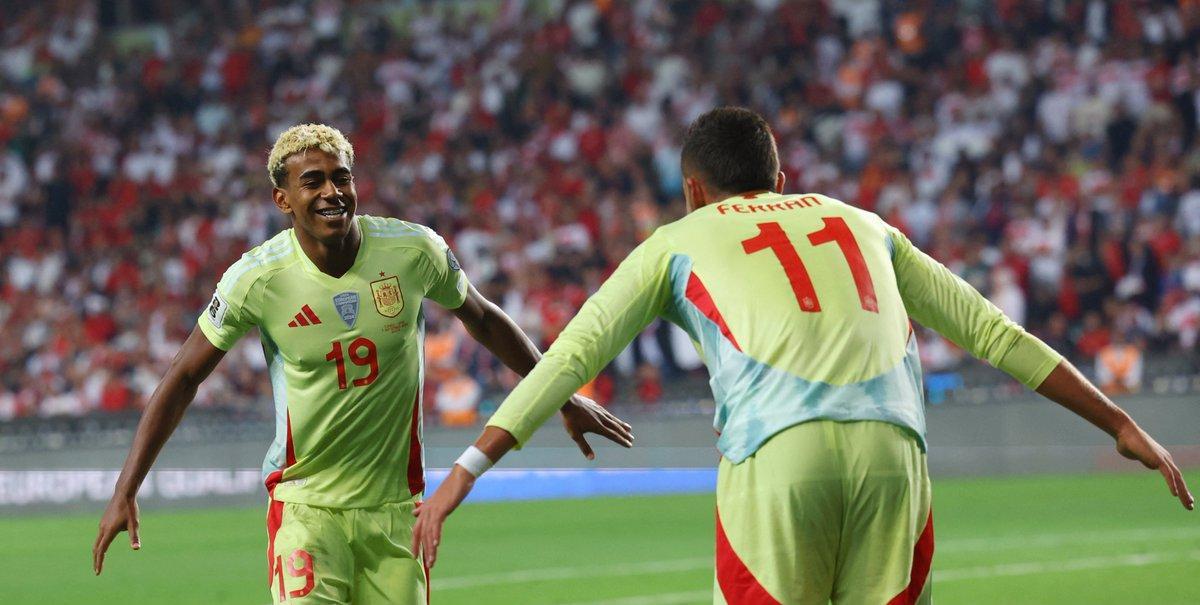 إسبانيا دخلت المباراة بثقة مدعومة بسلسلة من 21 مباراة دون هزيمة منذ مارس 2024، وبدا واضحاً من البداية أن كتيبة المدرب لويس دي لا فوينتي عازمة على مواصلة هذا المسار، حيث افتتح بيدري التسجيل بتسديدة بعيدة المدى في الدقيقة السادسة، قبل أن يضاعف ميرينو الغلة بتسديدة جميلة بعد جملة تكتيكية منظمة (22).