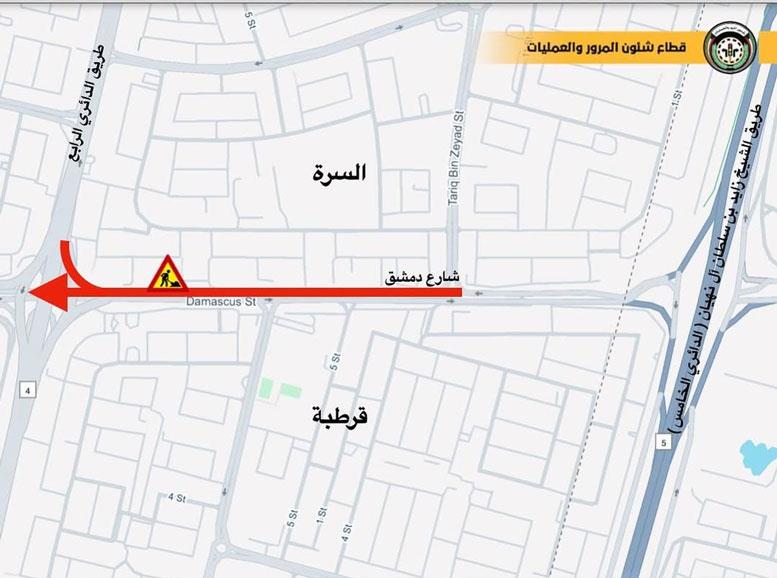 أعلنت الإدارة العامة للمرور عن إغلاق شارع دمشق بالكامل باتجاه طريق الدائري الرابع إعتباراً من مساء يوم الخميس الموافق 2025/09/11 وحتى فجر يوم الأحد الموافق 2025/09/14.