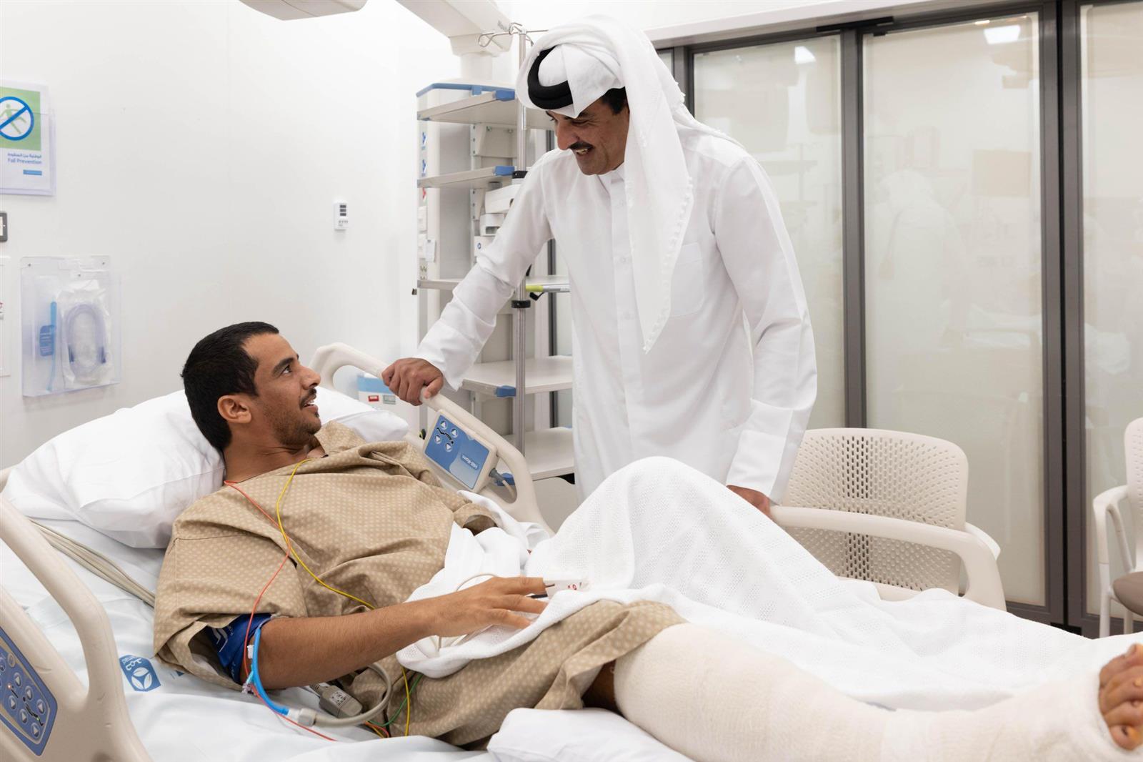 أمير قطر يزور المصابين جراء عدوان الاحتلال ويطمئن على حالتهم الصحي