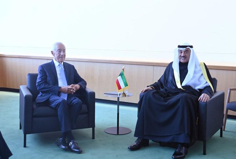 (كونا) - استقبل ممثل حضرة صاحب السمو أمير البلاد الشيخ مشعل الأحمد الجابر الصباح حفظه الله ورعاه سمو ولي العهد الشيخ صباح خالد الحمد الصباح حفظه الله اليوم فخامة الرئيس مارسيلو ريبيلو دي سوزا رئيس جمهورية البرتغال الصديقة وذلك على هامش اجتماعات الدورة 80 للجمعية العامة للأمم المتحدة في مقر منظمة الأمم المتحدة بمدينة نيويورك في الولايات المتحدة الأمريكية.