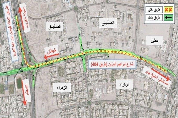 أعلنت الهيئة العامة للطرق والنقل البري، أنه سيتم بالتعاون مع الإدارة العامة للمرور، تنفيذ إغلاق مؤقت للجسر العلوي المؤدي من طريق الملك فيصل بن عبدالعزيز (طريق 50) إلى شارع إبراهيم المزين (طريق 404) باتجاه جنوب السرة ومستشفى الشيخ جابر، وذلك لاستكمال أعمال فرش الأسفلت.