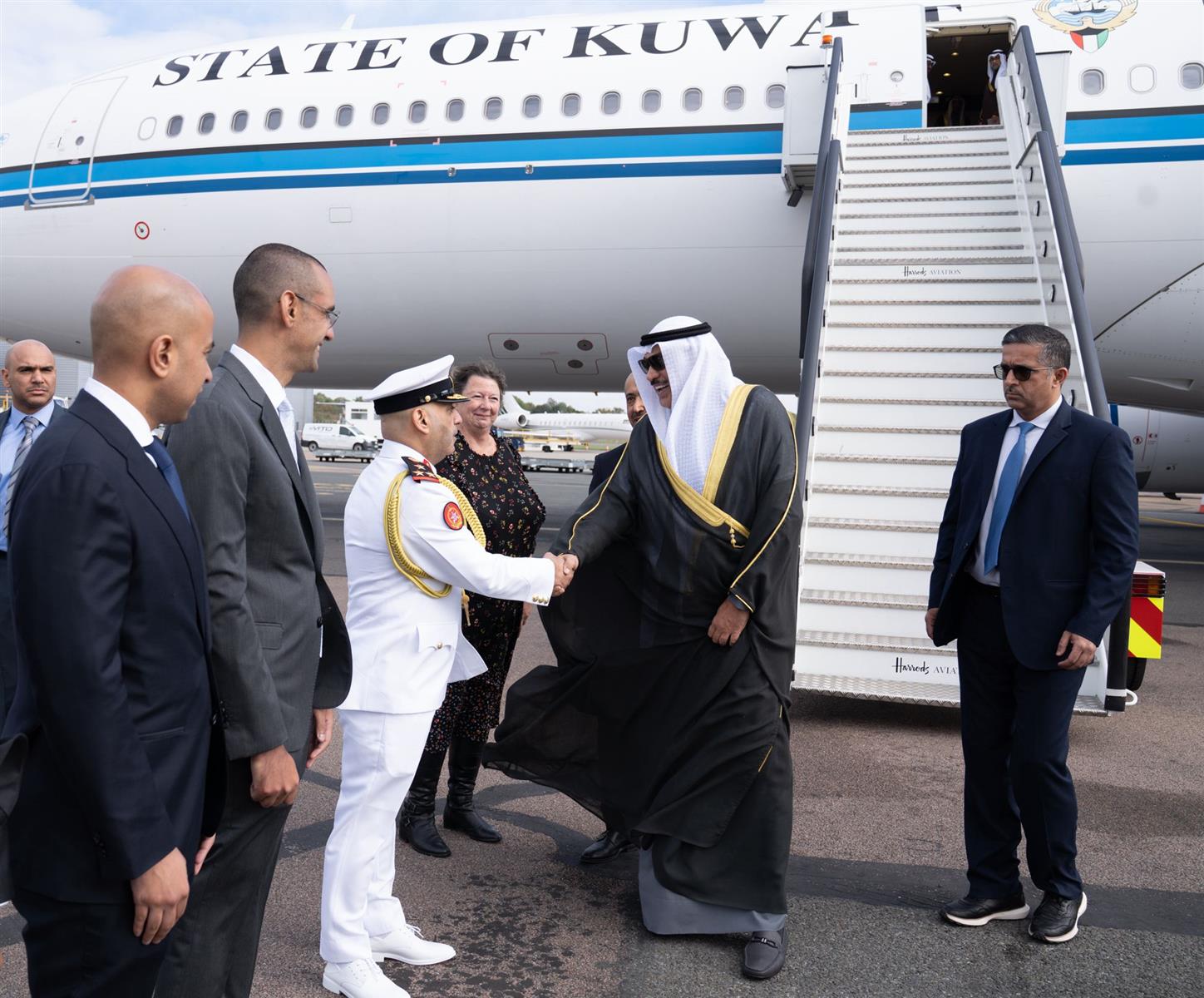 وكان في مقدمة مستقبلي سموه حفظه الله على أرض المطار الممثلة الخاصة لوزير الدولة للشؤون الخارجية والكومنولث والتنمية في المملكة المتحدة الصديقة أديل تايلور وسفير دولة الكويت لدى المملكة المتحدة الصديقة بدر عبدالله المنيخ والعضو المنتدب للهيئة العامة للاستثمار الشيخ سعود سالم عبدالعزيز الصباح والسادة رؤساء مكاتب دولة الكويت المعتمدة لدى المملكة المتحدة الصديقة.