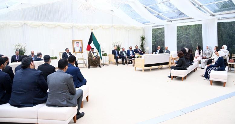 سموه التقى وبحضور وزير الخارجية عبدالله علي اليحيا عددًا من طلبة الكويت المتميزين الدارسين في المملكة المتحدة
