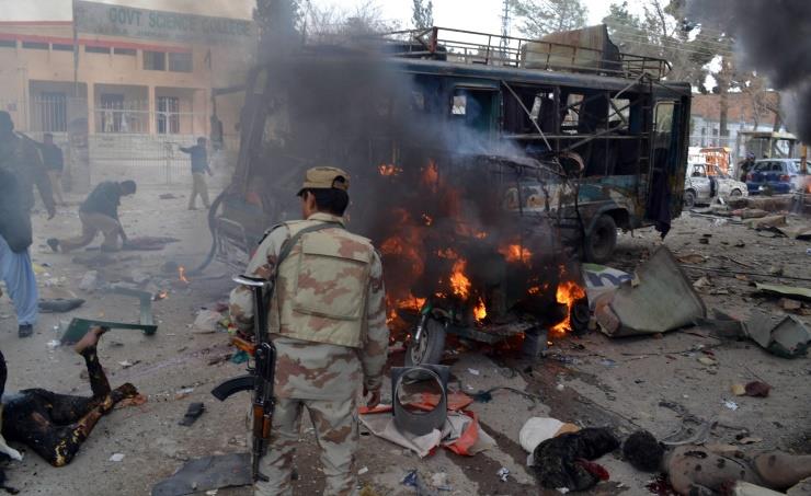 قال مسؤولون إن ما لا يقل عن 10 أشخاص لقوا حتفهم الثلاثاء، في تفجير انتحاري خارج مقر "قوة شبه عسكرية"، في مدينة كويتا بجنوب غرب باكستان.